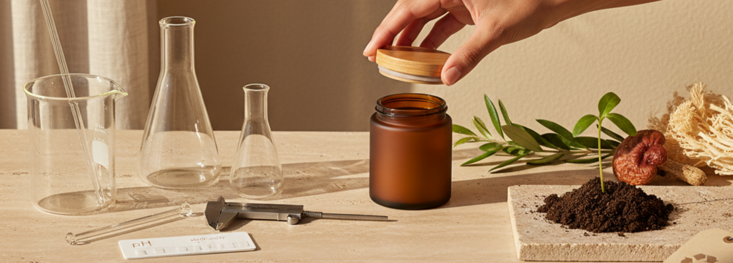 Every formula is vegan. We prioritize botanicals, mineral actives, and bio-ferments. Where we use functional fungi, it’s for a clear, evidence-backed purpose—never as a gimmick.